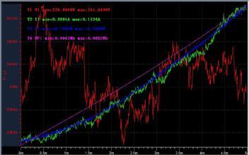 積分功能其實很多功率計都有,但是如果沒有靈活的數(shù)據(jù)記錄功能,積分也只能看到一個最終的功耗,與過程分析沒有多大作用。而有了數(shù)據(jù)記錄功能之后,就可以借助上位機軟件對記錄的各項數(shù)據(jù)進行趨勢圖分析,也就是整個測試中各項數(shù)據(jù)的變化過程。有了這個圖,文中開頭提到的問題就能迎刃而解。如下圖所示,是對測試過程中電壓、電流、功率、功耗的趨勢分析。