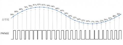 脈沖寬度調(diào)制(PWM)是一種對(duì)模擬信號(hào)進(jìn)行數(shù)字編碼的方法。通過高分辨率計(jì)數(shù)器的使用,方波的占空比被調(diào)制用來對(duì)一個(gè)具體模擬信號(hào)進(jìn)行編碼。PWM信號(hào)仍然是數(shù)字的,因?yàn)樵诮o定的任何時(shí)刻,滿幅值的直流供電要么完全有(ON),要么完全無(OFF)。電壓或電流是以一種通(ON)或斷(OFF)的重復(fù)脈沖序列被加到模擬負(fù)載上去。通的時(shí)候即是直流供電被加到負(fù)載上的時(shí)候,斷的時(shí)候即是供電被斷開的時(shí)候。只要帶寬足夠,任何模擬值都可以使用PWM進(jìn)行編碼。而占空比就是高電平持續(xù)時(shí)間與整個(gè)周期時(shí)間的比值,占空比越大,高電平持續(xù)的時(shí)間越長(zhǎng),模擬電路開通的時(shí)間就越長(zhǎng),如圖1所示。