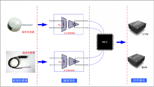 有些電力系統(tǒng)的溫濕度采集應(yīng)用中,采用模擬量輸出的溫/濕度傳感器,MCU離傳感器比較遠(yuǎn),溫度、濕度傳感器的信號(hào)傳到MCU處時(shí),因傳感器的信號(hào)較小,且線路較長(zhǎng),引入了額外的干擾,有用的信號(hào)可能被干擾信號(hào)淹沒。