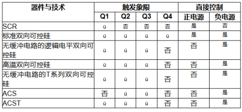 雙向控硅、ACS和ACST可以在每個(gè)象限或只在部分象限被激活,具體情況視開(kāi)關(guān)所采用的半導(dǎo)體技術(shù)。