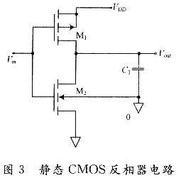以反相器為例說明這種電路的工作原理,如圖1所示。M1和M2的連接方式與傳統(tǒng)的靜態(tài)CMOS邏輯電路相似。不同的是電源不再是恒定不變的,而是用一個(gè)正弦信號(hào)代替,這個(gè)信號(hào)同時(shí)起到同步電路工作的作用,因此又稱作電源時(shí)鐘。M3和M4連接成二極管的形式用來控制充放電的路徑。