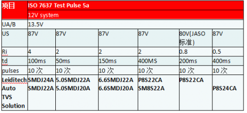 表一 12V系統(tǒng)TVS測(cè)試通過(guò)表