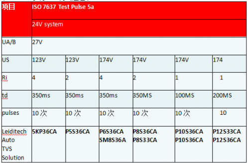 表二 24V系統(tǒng)TVS測(cè)試通過(guò)表