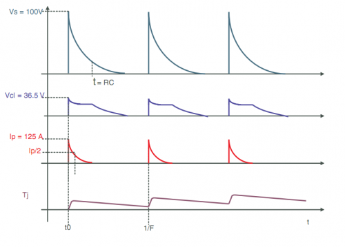 Ip=125A 表示通過(guò)TVS的瞬時(shí)大電流達(dá)到125A,因?yàn)門(mén)VS器件的導(dǎo)通,大電流的流過(guò),使得非常強(qiáng)的浪涌得到泄放,電路安全。
