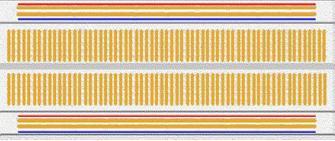 電阻器和電容器等元件的引線插入孔中。每組五個孔通過下面的金屬條連接形成一個節(jié)點。節(jié)點是電路中兩個或多個元件連接的點??赏ㄟ^將元件引線插入共同節(jié)點來實現(xiàn)元件之間的連接。試驗板頂部和底部用紅色和藍色條紋表示的一長排孔用于電源連接。插入元件并用跳線連接在一起便可構建電路的其余部分。此類試驗板最好搭配使用實芯線而不是多股絞合線。為方便起見,還提供配有插入式引腳的跳線。