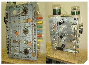 隨著真空管變小和頻率增加,鋁制底盤盒經(jīng)常用于電路的試驗板試驗。在底盤中穿孔用于安裝真空管插槽,端子板允許電路的點對點布線,如圖B所示。這種技術減小了電路尺寸,而鋁制底盤提供了高頻電路經(jīng)常需要的低阻抗接地層。