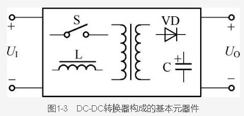 DC-DC轉(zhuǎn)換器是開關(guān)電源中最常見的一種,由二極管,三極管,電容器等構(gòu)成。DC-DC轉(zhuǎn)換器就是重復(fù)通斷開關(guān),把直流電壓或電流轉(zhuǎn)換成高頻方波電壓或電流,再經(jīng)整流平滑變?yōu)橹绷麟妷狠敵?。DC-DC轉(zhuǎn)換器室友半導(dǎo)體開關(guān)、整流二極管、平滑濾波電抗器和電容等基本元件組成。當(dāng)輸入、輸出間需要進(jìn)行電氣隔離時,可以采用變壓器,把高頻方波電壓通過變壓器傳送到輸出側(cè)。構(gòu)成DC-DC轉(zhuǎn)換器的基本元器件如下圖1所示。圖中UI為整流后不穩(wěn)定的直流電壓;UO為經(jīng)過斬波的輸出電壓;S為開關(guān)。