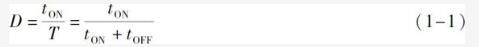 式中,T為開關(guān),S通斷周期;tON為開關(guān)S導(dǎo)通時間;TOFF為開關(guān)S截止時間。