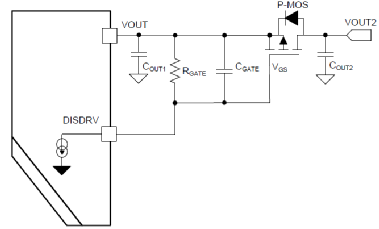 從上圖我們可以看到,所需要的外部器件很少。該芯片還提供一個(gè)單獨(dú)的 pin 腳 DIS來(lái)驅(qū)動(dòng)負(fù)載輸出端的外部 FET(P-FET),在設(shè)備關(guān)斷或者輸出短路時(shí)它能完全斷開(kāi)輸入與輸出的連接。啟動(dòng)時(shí),通過(guò)內(nèi)部電流源來(lái)控制外部 P-FET 開(kāi)關(guān)。在關(guān)斷或者輸出短路時(shí),將輸出與輸入側(cè)隔離,如下圖: